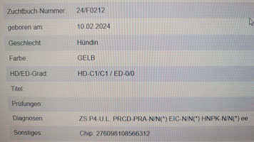 Da bei einigen Wurfgeschwistern schon Auswertungen der Gelenkuntersuchungen mit noch schlechteren Ergebnissen bekannt sind, wird Gianna nicht in die Zucht gehen. Außerdem sind bei einem Schwesterchen schon Krampfanfälle aufgetreten und in der Linie sind weitere Fälle bekannt. Weil eine Erblichkeit nicht auszuschließen ist, jedoch auch nicht eindeutig beweisbar ist, wollen wir kein derartiges Risiko eingehen. Wir würden dieser schönen Rasse keinen guten Dienst erweisen und von unserem Ziel, möglichst gesunde Erblinien einzubringen abweichen. So hübsch und von so einem netten sanften Wesen unsere Gianna auch ist, sie soll ein wunderschönes und labbigerecht ausgelastetes Leben bei uns haben und wir hoffen sehr, dass sie gesund bleibt! Wir werden auch keine Ausstellungen mehr besuchen oder weitere zuchtrelevante Prüfungen wie Wesenstest und Formwert ablegen, sondern die Zeit mit diesem wundervollen Hundemädchen einfach genießen, ihren ziemlich ausgeprägten Jagdtrieb auf Dummies umleiten und sie zu einer netten "Tante" für ein später vielleicht zu uns kommendes Hundekind heran ziehen.